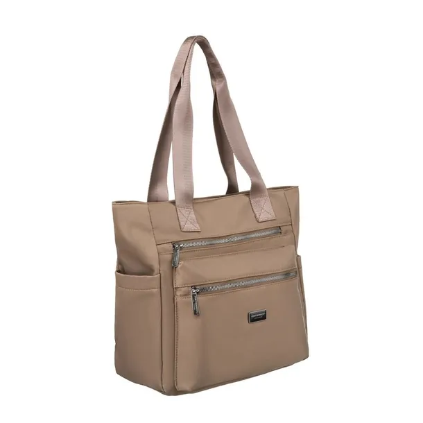 Nylonowa torebka damska w beżowym kolorze ze srebrnymi okuciami - Peterson