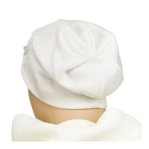 Beżowa czapka slouchy damska z kryształkami - Peterson