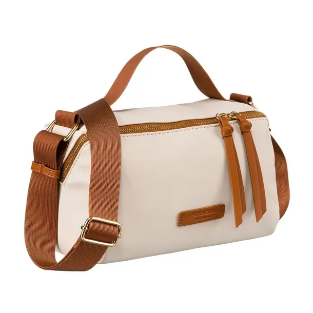 Listonoszka damska z nylonu i skóry ekologicznej w beżowo-brązowym kolorze - Peterson