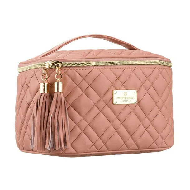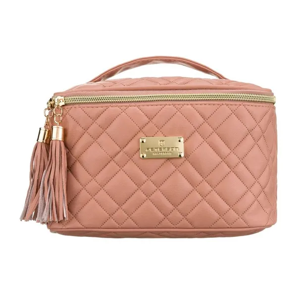 Różowa, pikowana kosmetyczka z tkaniny syntetycznej zamykana suwakiem - Peterson
