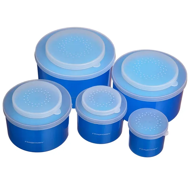W zestawie znajdziecie 5 pojemników o objętościach : 0,125 l; 0,25 l; 0,5 l; 0,75 l; 1 l
