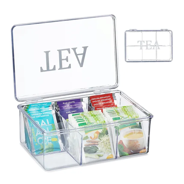 Uwielbiasz herbatę i szukasz na nią praktycznego pojemnika? W takim razie to pudełko jest w sam raz dla Ciebie. Herbaciarka składa się z 6 przegródek tej samej wielkości, z których każda może pomieścić po około 10 torebek herbaty. Dzięki temu, że organizer jest przezroczysty, zawsze masz wgląd w swoje herbaty. Pojemnik na torebki herbaty zapewnia suchość i ochronę aromatu Twojego ulubionego trunku. Organizer na herbatę jest łatwy do czyszczenia za pomocą wilgotnej ściereczki. Parametry przezroczystej herbaciarki - wymiary: ok. 9 x 21,5 x 15 cm (wys. x szer. x dł.) - wymiary przegródek: po ok. 7,5 x 6,5 x 6,5 cm (wys. x szer. x dł.) - waga: ok. 260 g - materiał: tworzywo sztuczne - kolor: przezroczysty, czarny Pudełko na torebki herbaty dla miłośników herbaty - miej wszystkie herbaty w jednym miejscu - przezroczysty design gwarantujący przejrzystość - ze srebrnym napisem TEA na pokrywce - zamykana pokrywka dla szybkiego dostępu do zawartości - suche przechowywanie różnych odmian herbaty w celu ochrony aromatu - łatwe w pielęgnacji tworzywo sztuczne można w razie potrzeby przetrzeć wilgotną szmatką W zestawie - 1x pudełko na herbatę - elementy dekoracyjne nie są zawarte w zestawie