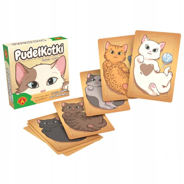 Niesforne kotki wlazły do pudełek. Zajrzyj, zgadnij albo zapamiętaj, który mruczek jest pod którym pamięciówka nie tylko dla miłośników kotów. Należy zapamiętać barwę i umaszczenie naszych pupilków (np. łatki, paski) oraz ich zabawkę. Na stół wykładamy karty z wizerunkiem pudełek, w których ukrywają się kotki. Każda karta to różna kombinacja trzech elementów. Rzut kośćmi wskaże, o którą kartę i o jaki atrybut chodzi. Jeśli pamiętasz (lub zgadniesz), gra rodzinna PudełKotki autorstwa Reinera ść opakowania:Karty 27 sztSpecjalne kostki - 2