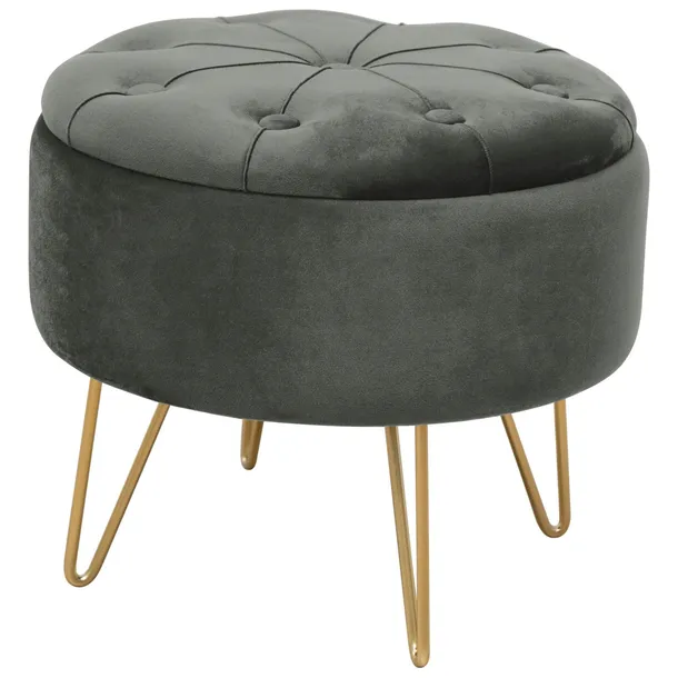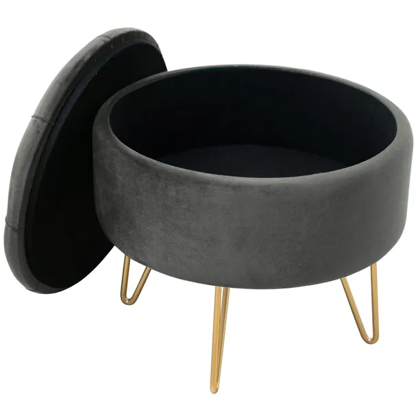 Pufa z pojemnikiem na metalowych nogach kolor złotego.