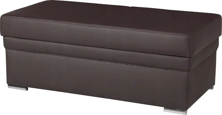 Duża prostokątna pufa o nowoczesnym designie, która świetnie sprawdzi się jako dodatkowe siedzisko dla dwóch osób czy podnóżek przy innym meblu wypoczynkowym. Siedzisko pufy wyposażono w piankę tapicerską T30 w trosce o komfort i wygodę użytkownika. Pufa osadzona na metalowych ozdobnych nóżkach w srebrnym kolorze.