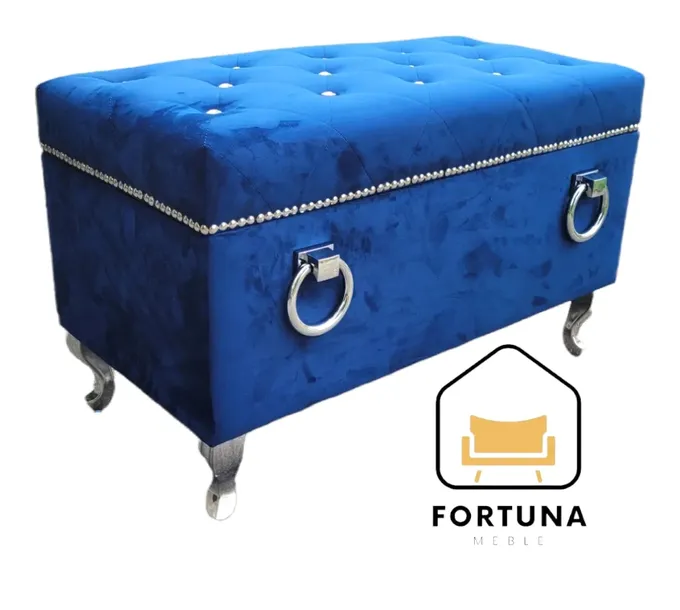 Pufa otwierana w stylu glamour do salonu świetnie nada się na różnego rodzaju drobiazgi.