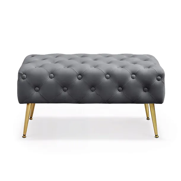 Siedzisko MADRID przykuwa uwagę designerskim wyglądem i eleganckim charakterem. Pikowana tkanina welurowa z guziczkami sprawia, że ten produkt pięknie ozdabia wnętrze i dodaje mu wyjątkowego szyku. Całość dopełniają metalowe nogi w kolorze złotym. Bez względu na to, czy postawisz go w wiatrołapie, sypialni, salonie czy też w innym pomieszczeniu, wszędzie będzie wyglądać efektownie i zjawiskowo. Siedzisko MADRID pięknie uzupełni aranżację utrzymaną w stylu glamour. Pikowana tapicerka i złote nogi doskonale podkreślą elegancję i szyk wnętrza. Dostępne są także podobne modele o większych (ławka tapicerowana MONACO) lub mniejszych (pufa pleciona QUADRA) wymiarach.