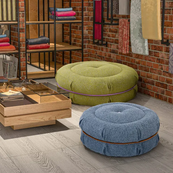 Pufa Makaronik dostępna jest w dwóch modnych wariantach kolorystycznych: jasnozielonym i niebiesko-szarym, co pozwala idealnie dopasować ją do wystroju Twojego salonu, pokoju dziecięcego czy sypialni.