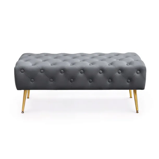 Ławka tapicerowana MONACO już od wejścia podkreśla prestiżowy wystrój wnętrza. Ten model znakomicie zdaje egzamin jako gustowna ławka do przedpokoju, na której można usiąść i wygodnie zdjąć buty. Świetnie sprawdzi się także w roli ławki przy łóżku. Dzięki szerokości aż 100 cm i wytrzymałości na obciążenia do 200 kg, na ławce tapicerowanej Monaco mogą jednocześnie siedzieć dwie osoby. Welurowa tkanina ozdobiona pikowaniem z dekoracyjnymi guziczkami oraz złote nogi nadają produktowi ekskluzywny wygląd. Oferujemy także podobne modele o mniejszych wymiarach: MADRID oraz QUADRA.