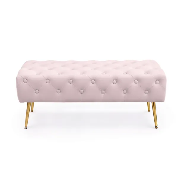 Ławka tapicerowana MONACO już od wejścia podkreśla prestiżowy wystrój wnętrza. Ten model znakomicie zdaje egzamin jako gustowna ławka do przedpokoju, na której można usiąść i wygodnie zdjąć buty. Świetnie sprawdzi się także w roli ławki przy łóżku. Dzięki szerokości aż 100 cm i wytrzymałości na obciążenia do 200 kg, na ławce tapicerowanej Monaco mogą jednocześnie siedzieć dwie osoby. Welurowa tkanina ozdobiona pikowaniem z dekoracyjnymi guziczkami oraz złote nogi nadają produktowi ekskluzywny wygląd. Oferujemy także podobne modele o mniejszych wymiarach: MADRID oraz QUADRA.