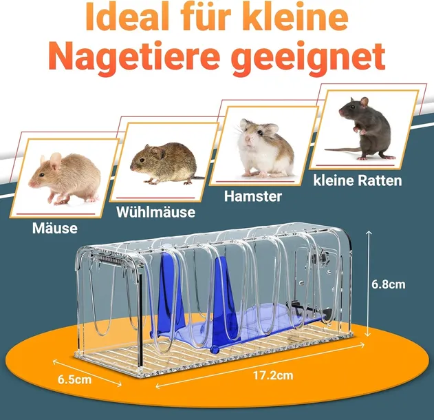 Skuteczne i bezpieczne: zaprojektowane z myślą o maksymalnej wydajności, nasze pułapki na myszy bezpiecznie chwytają małe gryzonie, nie uszkadzając ich. Idealnie nadaje się do stosowania w kuchniach, ogrodach i w przypadku inwazji norników. Pułapki na myszy są bezpieczne dla zwierząt domowych i ludzi.