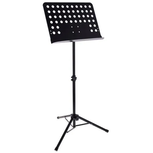 Fun Generation Orchestra Stand to przystępny cenowo, solidny pulpit do nut wykonany ze stali. Dzięki perforowanej płycie o wymiarach 47,5 x 34,5 x 5 cm pulpit jest lekki, a jednocześnie stabilny. Regulowany statyw o wysokości od 62 do 110 cm umożliwia wygodne dopasowanie, a całkowita wysokość wynosi 135 cm. Po złożeniu statyw mierzy 62 cm długości i 10,5 cm średnicy, co sprawia, że jest łatwy w transporcie. Waży tylko 2,5 kg, co czyni go idealnym wyborem dla uczniów, zespołów i amatorów muzyki.