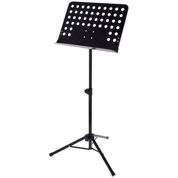 Fun Generation Orchestra Stand to przystępny cenowo, solidny pulpit do nut wykonany ze stali. Dzięki perforowanej płycie o wymiarach 47,5 x 34,5 x 5 cm pulpit jest lekki, a jednocześnie stabilny. Regulowany statyw o wysokości od 62 do 110 cm umożliwia wygodne dopasowanie, a całkowita wysokość wynosi 135 cm. Po złożeniu statyw mierzy 62 cm długości i 10,5 cm średnicy, co sprawia, że jest łatwy w transporcie. Waży tylko 2,5 kg, co czyni go idealnym wyborem dla uczniów, zespołów i amatorów muzyki.