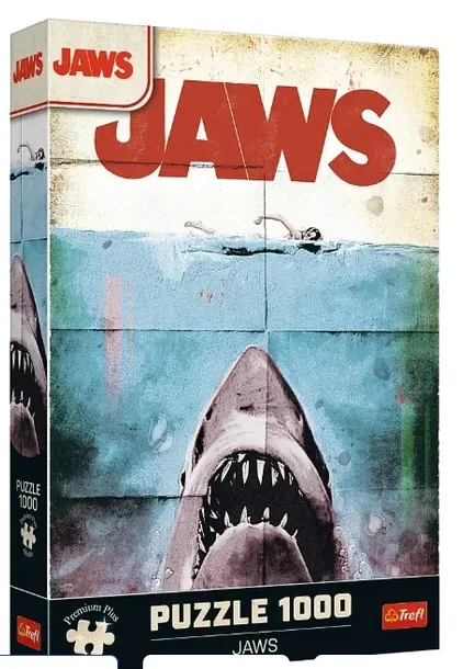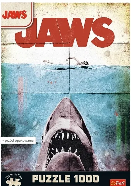 Puzzle Jaws przedstawiają kultowy plakat z filmu Szczęki. Po ich ułożeniu powstanie obraz o wymiarach 683x480 mm.
