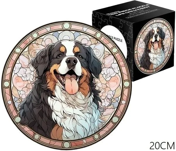 Odkryj magię układania dzięki naszym okrągłym puzzlom z motywem uroczego Berneńskiego Psa Pasterskiego. Ten 168-elementowy zestaw prezentuje wizerunek psa w zachwycającym, artystycznym stylu witrażu, pełnym pastelowych barw i eleganckich, kwiatowych wzorów otaczających główny motyw. To nie tylko wyzwanie intelektualne, ale także piękny przedmiot dekoracyjny, który po ukończeniu może stać się oryginalną ozdobą każdego wnętrza. Puzzle te są idealnym prezentem dla każdego entuzjasty puzzli i fana tej majestatycznej rasy psów, oferując szybką i satysfakcjonującą zabawę. Solidne wykonanie i precyzyjne cięcie elementów gwarantują satysfakcję z układania. Zapewnij sobie godziny relaksującej i twórczej zabawy.
