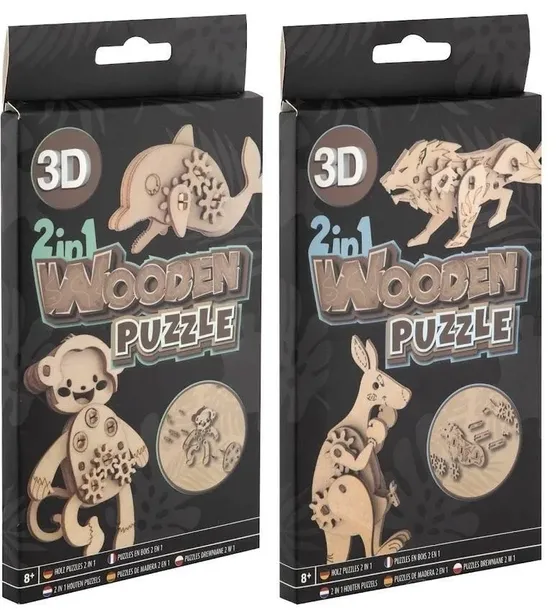 Drewniane 3D puzzle 2 w 1(rozmiar 10 cm). Dostępne 2 warianty, wysyłka losowo