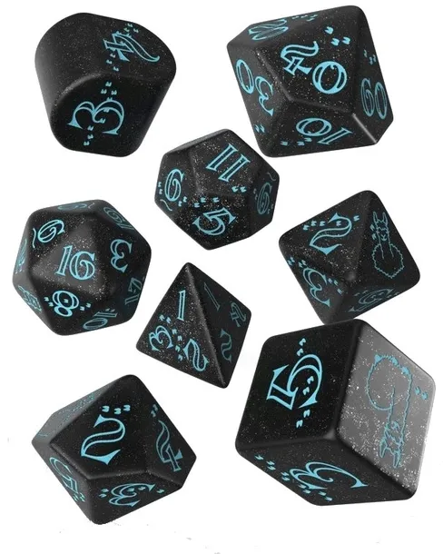 - 20 lat Kości — Zestaw zawiera 8 elementów: K4 w wersji tradycyjnej oraz modern, K6, K8, K10, K12, K20, oraz K100.