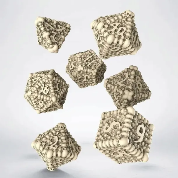 Komplet kości: Macabre to innowacyjny projekt kostek 3D o kształcie brył z dziesiątek maleńkich czaszek. Ten zestaw zawiera 7 kości RPG: D4, D6, D8, D10, D00, D12 i D20.