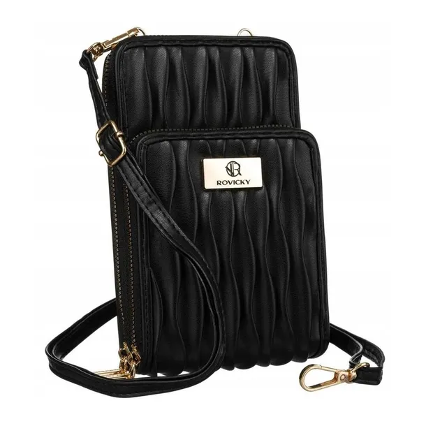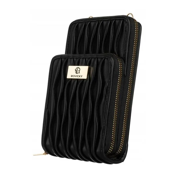 Torebka-portfel ze skóry ekologicznej w czarnym kolorze z modnym marszczeniem na froncie - Rovicky