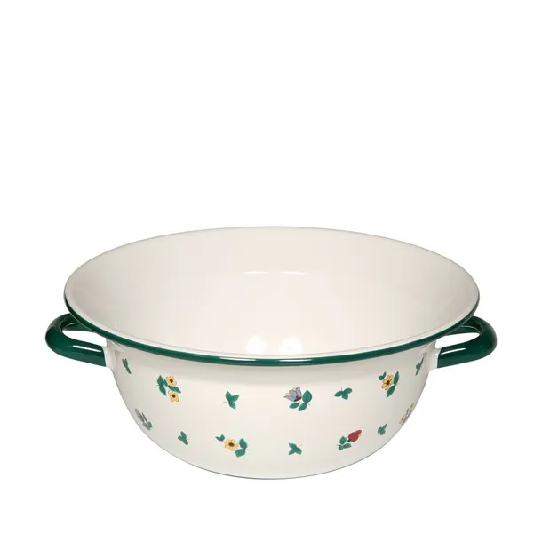 - Wyprodukowany w AustriiEmaliowane miski z dwoma uchwytami przyciągają wzrok w kuchni i zachowują smak potraw.Emalia materiałowa składa się z żelaza, które zostało stopione ze szkłem w wysokich temperaturach, czyli z naturalnych surowców.Nieporowata, gładka szklana powierzchnia gwarantuje idealną higienę. Jest to neutralne dla aromatów i hamujące rozwój bakterii, a także łatwe do czyszczenia. Odpowiednio użytkowane i pielęgnowane naczynia emaliowane będą służyć przez długi czas i zachowają swój typowy połysk.Miska nadaje się jako miska na owoce lub sałatkę, ale także jako półmisek do serwowania wielu dań.