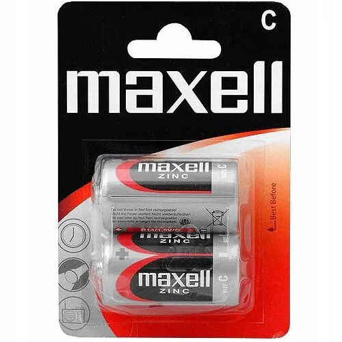 Baterie cynkowo-węglowe Maxell R14 / C - 2 sztuki Najlepsze baterie do zastosowań niskoenergetycznych Cynkowo - węglowe baterie Maxell zostały zaprojektowane z myślą o produktach nie wymagających dużego poboru energii. Doskonale nadają się do użytku w takich urządzeniach jak zegary, radia, kalkulatory i piloty zdalnego sterowania.
