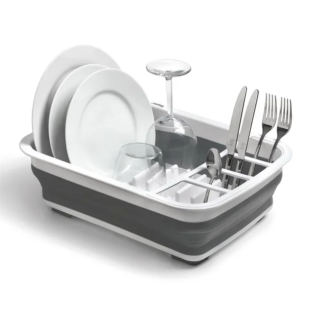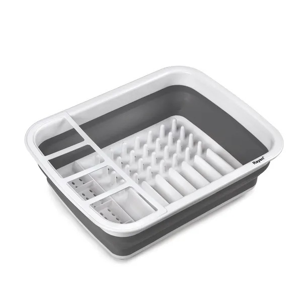 Zaprojektowana z myślą o każdym elemencie Twojej zastawy stołowej, suszarka posiada przemyślane przegródki na talerze, szklanki, kubki, a także osobne przegrody na akcesoria kuchenne i sztućce. Jej prawdziwym atutem jest jednak zdolność do składania. W kilka chwil przekształcasz ją w płaski element, który bez problemu schowasz w szafce lub szufladzie, oszczędzając cenne miejsce w kuchni.