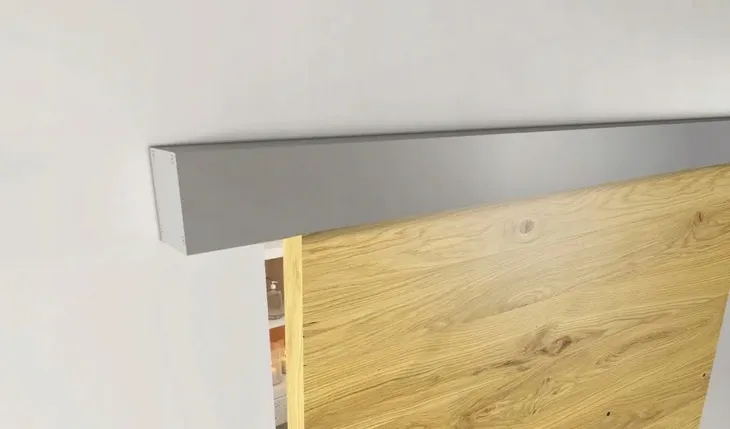Nowoczesny system przesuwny naścienny z anodowaną prowadnicą oraz prostokątną blendą, z możliwością montażu sufitowego. Cechuje się bardzo małą odległością między skrzydłem drzwi a ścianą. Pasuje do nowoczesnych i minimalistycznych wnętrz. Do systemu STRETTO D pasują drzwi z kolekcji MODERN oraz MODERN RUSTIC. System nie uwzględnia uchwytu, który można dołożyć oddzielnie.