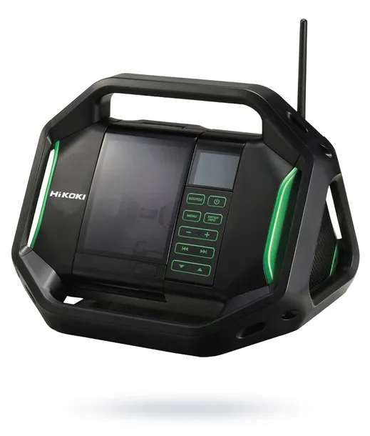 Przedstawiamy Państwu wysokiej klasy radio HiKOKI UR18DSAL, wyposażone zostało w cyfrowy wyświetlacz LCD i port USB. Na uwagę zasługuje fakt, że radio zasilane może być zarówno akumulatorami kasetowymi (9,6V, 12V, 14,4V i 18V) jak i slajdowymi (14,4V i 18V), a można również zasilać je kablem. Przedstawiana wersja nie posiada w zestawie akumulatora.