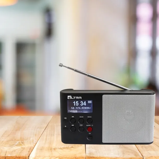 Radio Eltra Ula to kompaktowy, przenośny odbiornik, który doskonale sprawdzi się zarówno w domu, jak i w podróży. Obsługuje cyfrowe radio DAB+ oraz tradycyjne fale FM, co zapewnia dostęp do szerokiej oferty programów. Jego czytelny wyświetlacz typu matrix umożliwia szybki podgląd częstotliwości oraz dodatkowych informacji nadawanych w ramach systemu RDS. Dzięki temu radio gwarantuje nie tylko wysoką jakość dźwięku, ale i komfort użytkowania.