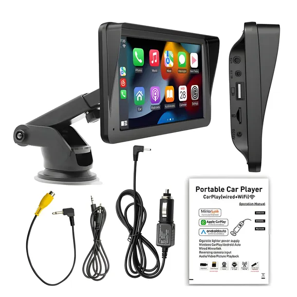 ✅Radio samochodowe 7” z Android Auto i Apple CarPlay – nowoczesny system multimedialny do Twojego auta. Obsługuje bezprzewodowe połączenie, nawigację GPS, streaming wideo oraz sterowanie głosowe. Wyświetlacz dotykowy HD zapewnia wygodną obsługę, a zaawansowana łączność Bluetooth umożliwia bezpieczne rozmowy i odtwarzanie muzyki. Idealne rozwiązanie dla kierowców ceniących komfort i funkcjonalność. Bezprzewodowy odtwarzacz multimedialny z funkcją Apple CarPlay i Android Auto to idealne rozwiązanie dla osób, które cenią wygodę, funkcjonalność i bezpieczeństwo podczas jazdy. Dzięki temu urządzeniu zyskujesz łatwy dostęp do nawigacji, muzyki, rozmów telefonicznych i aplikacji, nie odrywając rąk od kierownicy. Intuicyjna obsługa oraz szeroka kompatybilność sprawiają, że to doskonały wybór dla każdego kierowcy. Plug & Play – instalacja w kilka minut Dzięki technologii Plug & Play montaż urządzenia nie wymaga skomplikowanej instalacji ani modyfikacji samochodu. Wystarczy podłączyć radio do zasilania i sparować je z telefonem, aby natychmiast cieszyć się funkcjami CarPlay lub Android Auto. To idealne rozwiązanie dla osób, które chcą ulepszyć swój system multimedialny bez kosztownej wymiany fabrycznego radia. Wsparcie dla oryginalnego systemu audio w samochodzie Nie musisz rezygnować z wysokiej jakości dźwięku w swoim samochodzie! Radio można podłączyć do fabrycznego systemu audio, zachowując oryginalne brzmienie i głośniki pojazdu. Dzięki temu Twoja ulubiona muzyka, audiobooki czy rozmowy telefoniczne będą odtwarzane w najlepszej możliwej jakości. Bezprzewodowy CarPlay i Android Auto – wygoda bez kabli Dzięki bezprzewodowej obsłudze CarPlay i Android Auto masz dostęp do swoich aplikacji, map i muzyki bez konieczności podłączania telefonu kablem. Obsługa karty SD – więcej miejsca na Twoje multimedia Radio obsługuje karty pamięci SD, co pozwala na przechowywanie ulubionych utworów, filmów czy plików bez konieczności korzystania z telefonu. Możesz cieszyć się swoją biblioteką multimedialną bez dostępu do internetu, co sprawia, że podróże stają się jeszcze przyjemniejsze. Obsługa Bluetooth 5.0 – płynna łączność i krystaliczny dźwięk Moduł Bluetooth 5.0 zapewnia stabilne połączenie i szybki transfer danych. Możesz swobodnie prowadzić rozmowy telefoniczne w trybie głośnomówiącym, a także odtwarzać muzykę z telefonu bez utraty jakości dźwięku. To idealne rozwiązanie dla osób, które cenią sobie wygodę i bezpieczeństwo w trakcie jazdy. Podłącz Kamere cofania! Dodatkowo, urządzenie obsługuje możliwość podłączenia kamery cofania (kamera nie jest dołączona do zestawu). Dzięki temu możesz znacząco zwiększyć bezpieczeństwo parkowania i manewrowania, uzyskując pełny podgląd na ekranie radia. To idealne rozwiązanie dla osób, które chcą mieć lepszą widoczność przy cofaniu i uniknąć potencjalnych przeszkód. Kup teraz i ciesz się nowoczesnym systemem multimedialnym! Podnieś komfort jazdy i bezpieczeństwo dzięki nowoczesnym funkcjom Apple CarPlay i Android Auto! Zestaw zawiera: ✔ Radio samochodowe 7” HD ✔ Zasilacz i okablowanie do podłączenia ✔ Uchwyt montażowy na deskę rozdzielczą + taśma montażowa ✔ Uchwyt na szybę z przyssawką ✔ Instrukcja obsługi