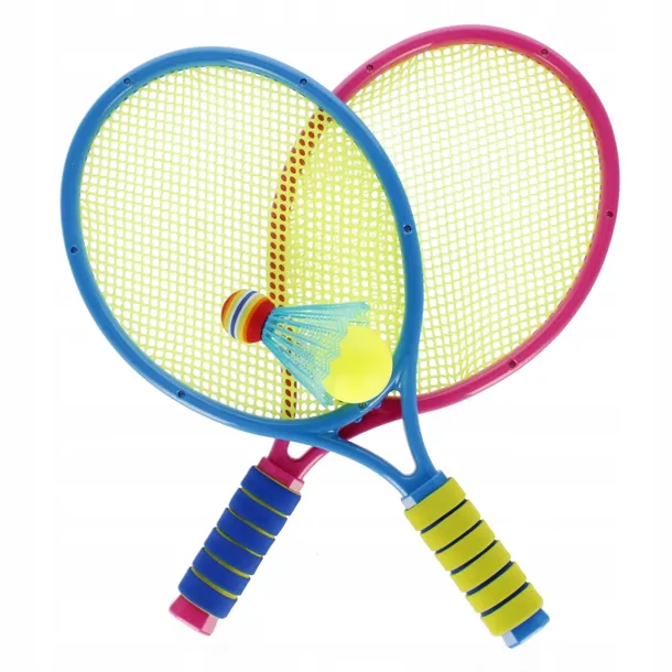 Zalety produktu: rakietki posiadają elastyczną siatkę wykonaną z materiału, rakietki lekkie, wygodne do trzymania, rozwija koordynację ruchową dziecka. Nie możesz się zdecydować czy wolisz Badmintona, Squasha czy Tenis? Dzięki MEGA CREATIVE możesz spróbować swoich sił w każdej z nich i zdecydować, w czym czujesz się lepiej albo po prostu, uniknąć nudy i zagrać we wszystkie te gry Zawartość zestawu: 2 rakietki, 1 piłka oraz 1 lotka. Wymiary/waga/baterie: wymiary produktu dł. x wys. x gł. cm : 21x42x3, wymiary opakowania dł. x wys. x gł. cm : 43x24x5, waga produktu bez opakowania kg : 0,18 kg, waga produktu w opakowaniu kg : 0, 33 kg, nie wymaga zasilania bateriami. Zabawka przeznaczona dla dzieci w wieku: 3 .