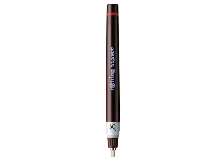 Isograph rOtring został stworzony, by zapewnić precyzję i optymalne rezultaty. Twarda, chromowana końcówka jest trwała i pozwala na wykonywanie najdrobniejszych detali. Nasuwana tuleja ułatwia dostęp do spirali dopływu tuszu i umożliwia szybkie czyszczenie w razie potrzeby. Poziom tuszu jest widoczny z zewnątrz a dzięki napełnianemu zbiorniczkowi tuszu jest to idealne narzędzie do częstego kreślenia. Isograph posiada oznakowanie kolorem wskazujące na szerokość linii i umożliwiające szybką identyfikację.