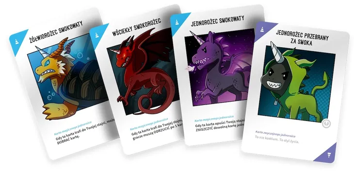 Odjechane Jednorożce: Smoki to rozszerzenie składające się z 54 zupełnie nowych kart, które wprowadzą do Twoich rozgrywek fantastyczne stworzenia: od smokorożków, poprzez dojrzałe osobniki aż do zwykłych jednorożców, które marzą, by zostać smokami. Możesz je łączyć zarówno z klasyczną grą podstawową, jak i wersją Bez cenzury.