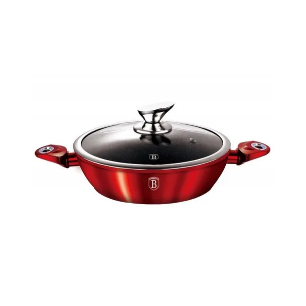 Garnki i akcesoria z serii METALLIC firmy BERLINGER HAUS wykonane są z wysokiej klasy kutego aluminium pokrytego wewnątrz potrójną powłoką granitową (marble) o bardzo wysokim współczynniku twardości. Powłoka zewnętrzna występuje w kilku wersjach kolorystycznych o charakterystycznym metalicznym połysku. Te atrakcyjne i modne naczynia wyposażone są standardowo w uchwyty typu SOFT TOUCH (silikon handle). Przystosowane do wszystkich rodzajów kuchenek: gazowa, elektryczna, ceramiczna, halogenowa, indukcyjna. System TURBO INDUCTION (bardzo szybko nagrzewają się) pozwala zaoszczędzić nawet 35% energii.Wymiary:
