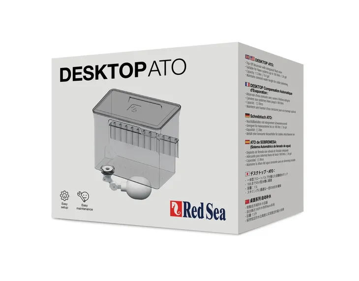 DESKTOP automatic top-off to automatyczne uzupełnianie poziomu wody w akwarium. Jest to urządzenie, które automatycznie monitoruje poziom wody w zbiorniku i dodaje wodę, gdy jest to konieczne, aby utrzymać poziom na stałym poziomie. Produkt posiada zbiornik na świeżą wodę o pojemności 1,5 litra (0,4 galona), który utrzymuje stały poziom wody i wystarcza na około 3 dni parowania.