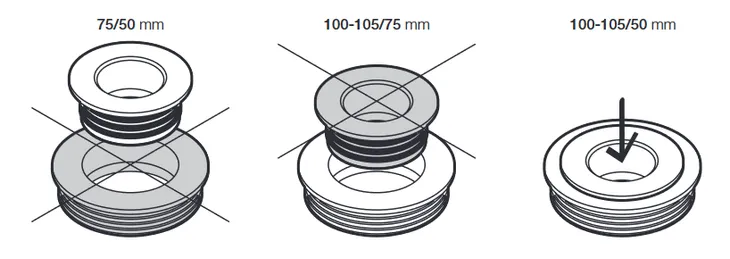 Ciśnienie: Redukcje są przeznaczone do systemów bezciśnieniowych (maksymalnie 2 bar). Nie stosuj ich w instalacjach, gdzie występuje wyższe ciśnienie.