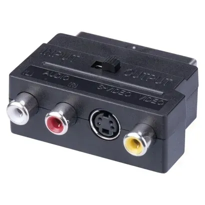 opakowanie: 1 szt., woreczek|przełącznik IN/OUT: tak|wymiary: nie dotyczy|złącza: SCART – 3× CINCH + SVHS