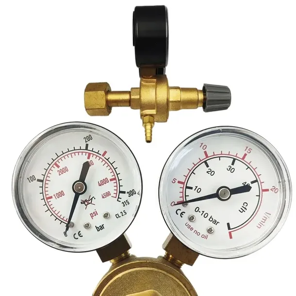 Ten wysokiej jakości reduktor butlowy mini AR/CO2 wyróżnia się solidną konstrukcją i niezawodnymi mechanizmami, które umożliwiają dokładne regulowanie ciśnienia gazu z butli argonu lub dwutlenku węgla. Wyposażony w dwa precyzyjne manometry – jeden monitorujący ciśnienie w butli, drugi przepływ gazu na minutę – gwarantuje stałą i stabilną pracę, co przekłada się na wyjątkową efektywność w procesach spawalniczych.