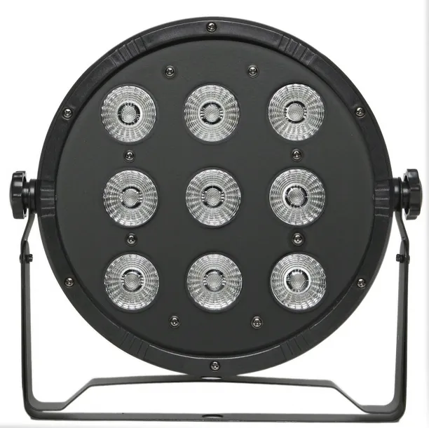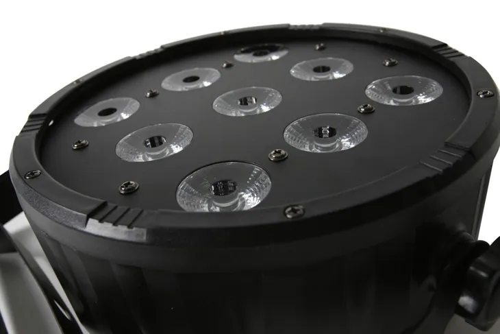 Kompaktowa lampa typu LED PAR wyposażona 9 diod LED o mocy 10W każda. Oferuje tym samym optymalną jasność świecenia i wyjątkowo mocne nasycenie kolorów. Urządzenie posiada gotowe programy pracy, co znacznie skraca konfigurację w dowolnym typie instalacji. Jest to poręczna i lekka lampa o wysokiej wartości strumienia świetlnego, która może być sterowana w standardzie DMX.