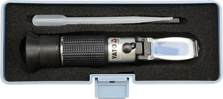 Profesjonalny refraktometr do pomiarów płynów eksploatacyjnych samochodów osobowych, ciężarowych i autobusów. Przeznaczony jest do określania temperatury zamarzania płynu do spryskiwaczy, płynu chłodzącego glikolu proplenowego i glikolu etylowego. Podaje również zakres gęstości elektrolitu.