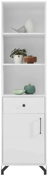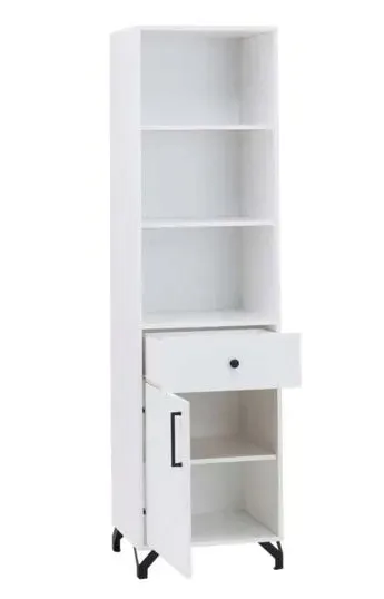Meble systemowe GIZA to idealna propozycja dla stonowanych wnętrz. Czysto biała tafla frontów w połysku wraz z charakterystycznymi czarnymi uchwytami i nóżkami wyróżni się na tle całości. Seria wpasuje się idealnie do salonu, jak i pokoju młodzieżowego ze względu na 13 dostępnych brył, w których skład wchodzą witryny, biurko lub nawet łóżko.