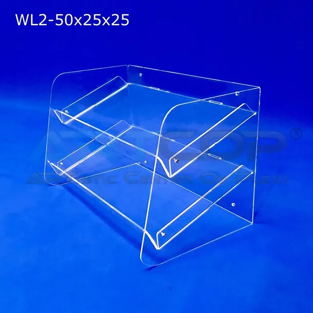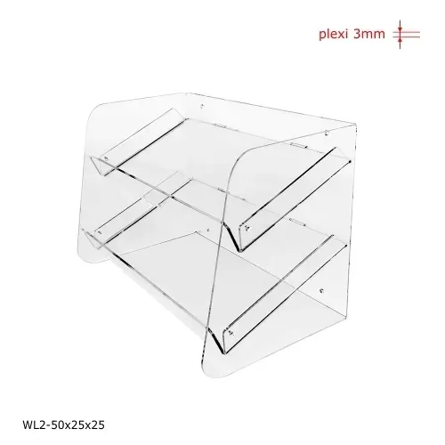 Stojak, regalik na produkty do sprzedaży z plexi 3mm o wymiarach: 50cm x 25cm x 25cm