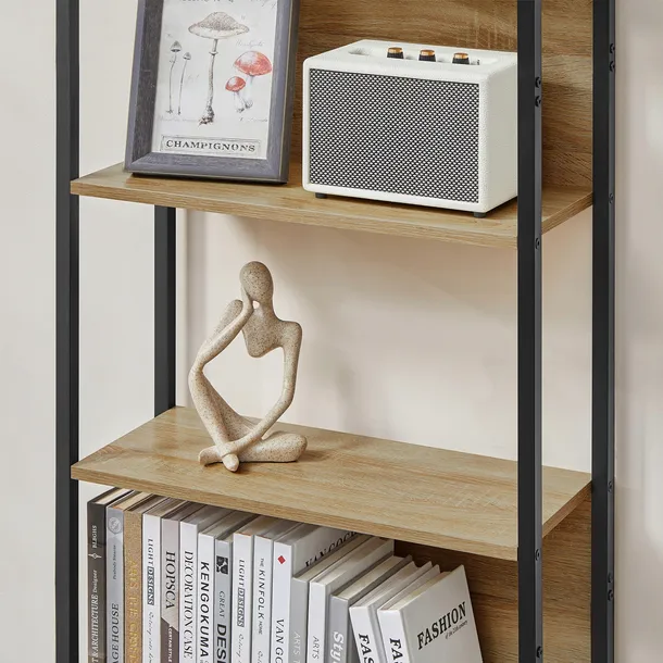 Półki stylowego regału w kolorze sonoma są stabilne, a więc możemy umieścić na nich książki, kwiaty w wazonach, ozdobne figurki, dziecięce zabawki oraz ramki ze zdjęciami.