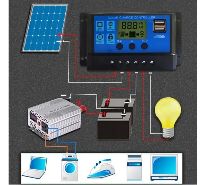 Kontroler przetwarza energię z paneli słonecznych do akumulatora, zabezpieczając przed przeładowaniem oraz nadmiernym rozładowaniem przez sprzęty podłączone do zasilania.