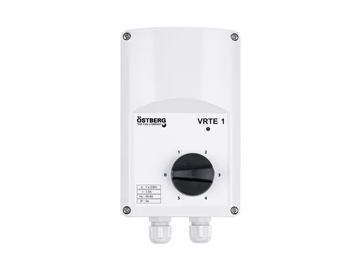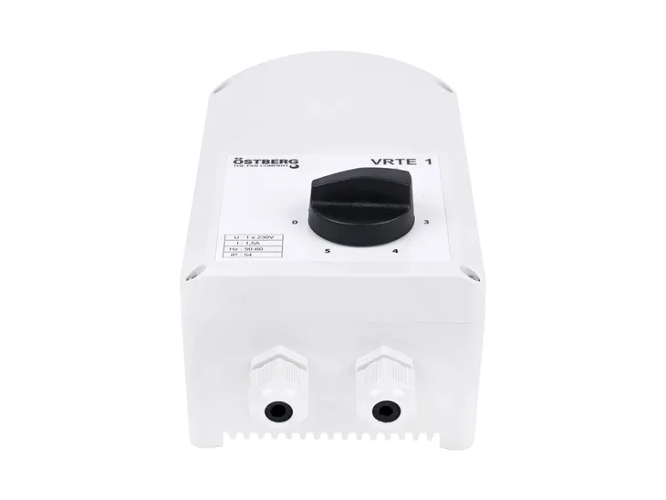 Regulator VRTE 1 Östberg to urządzenie wykorzystywane do współpracowania z wentylatorami tej samej marki. Przy jego pomocy można w sposób ręczny regulować napięcie w jednofazowych silnikach. Możliwe jest 5-stopniowe ustawianie prędkości. Wykonuje się to bardzo prosto, za pomocą pokrętła na obudowie. Warto zwrócić również uwagę na jakość wykonania regulatora. Jest on solidny i zamknięty w wytrzymałej obudowie z PCV, przez co jest dobrze chroniony przed uszkodzeniami mechanicznymi oraz zanieczyszczeniem.