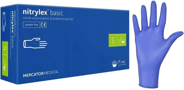 rękawice nitrylowe, Nitrylex Basic, rozmiar 7-S, rękawice medyczne, ciemnoniebieskie rękawice, bezpudrowe, dla alergików, rękawice higieniczne, rękawice jednorazowe, ochrona rąk, Mercator Medical, rękawice do salonów kosmetycznych, rękawice do przemysłu, rękawice do gastronomii, rękawice do weterynarii, wyroby medyczne, akcesoria medyczne, rękawice ochronne, rękawice do prac montażowych, rękawice dla kierowców, rękawice dla mechaników, kontakt z żywnością, klasy I, kategoria III, normy EN, dyrektywa (UE) 2017/745, certyfikowane rękawice, rękawice do tatuażu, Kraków, Polska, rękawice do stomatologii, ergonomiczne rękawice, nie zawierają lateksu, jednostka notyfikowana 2777, bezpieczeństwo i komfort, szerokość dłoni, pakowane w karton, opakowanie 100 sztuk