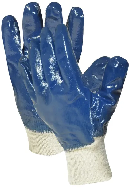 Rękawice wykonane z grubego nitrylu w kolorze niebieskim. Zakończone ściągaczem.