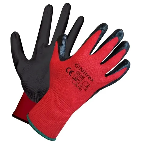 Rękawice robocze GNITREX Set B – 1 para, czerwone, nitrylowe, rozmiar 10/XL