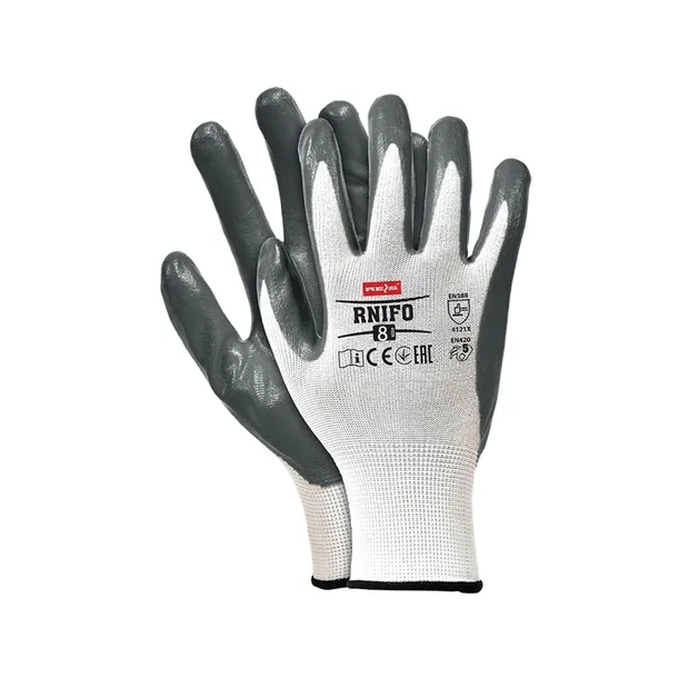 Rękawice ochronne wykonane z nylonu (ścieg 13), powlekane spienionym nitrylem.