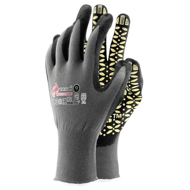 Dzianina: 90% nylon, 10% elastan (ścieg 15), powlekane ultra cienką powłoką spienionego nitrylu typu FOAM, dodatkowe nakropienie z nitrylu, zakończone ściągaczem, zwiększona odpornością na ścieranie i przetarcie, zapewniają manualność oraz doskonałe czucie trzymanego przedmiotu, nitryl zwiększa odporność na smary i oleje, sprawdzają się w miejscach, gdzie następuje kontakt z wyżej wymienionymi substancjami, wykorzystywane do ogólnych prac mechanicznych.